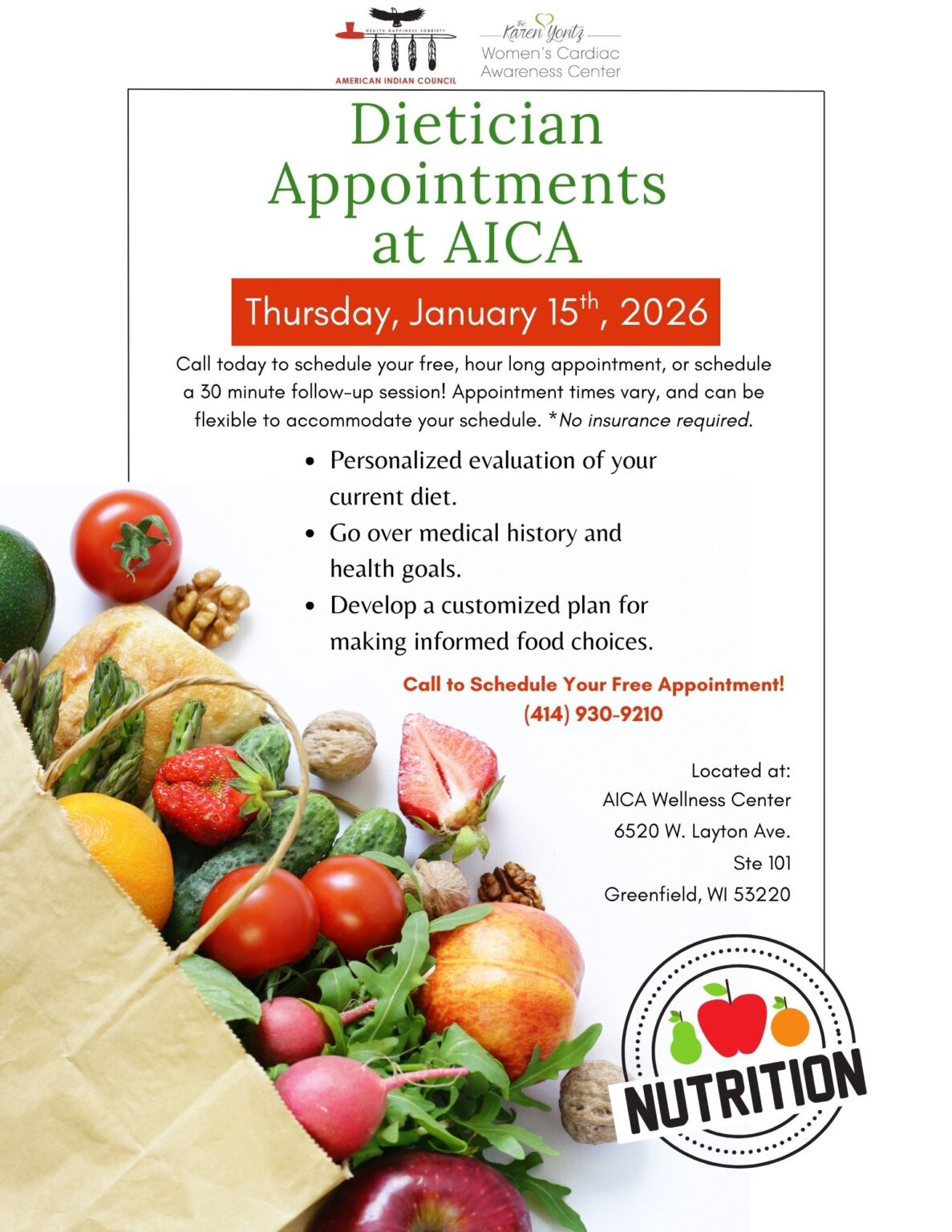 Join us on Thursday, Jan 15th for our Dietician Appointments day!