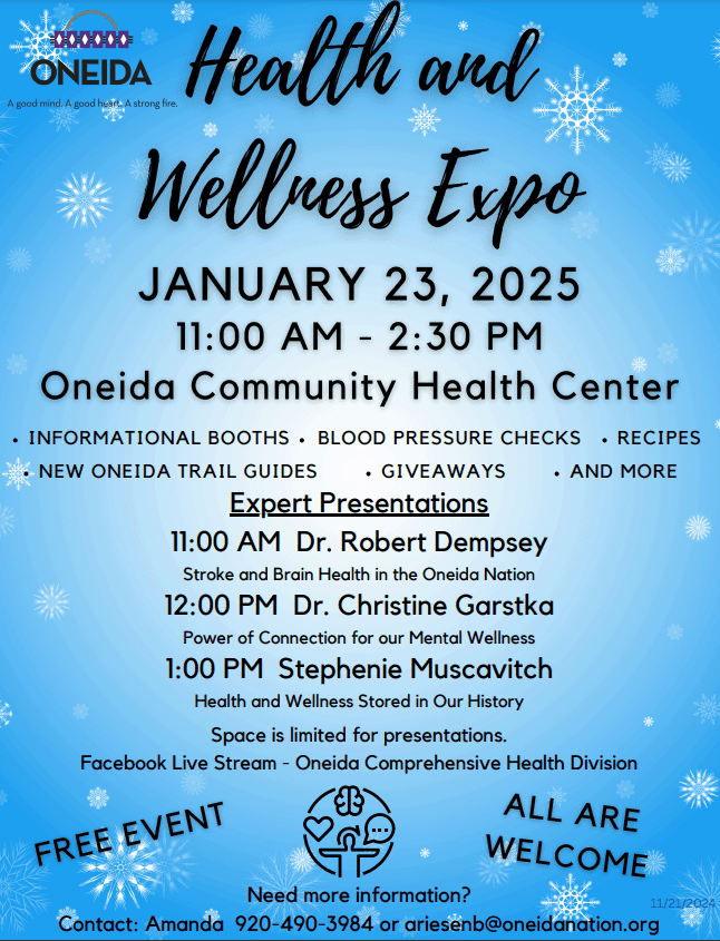 Jan 23rd from 11-2:30pm at the Oneida Community Health Center.